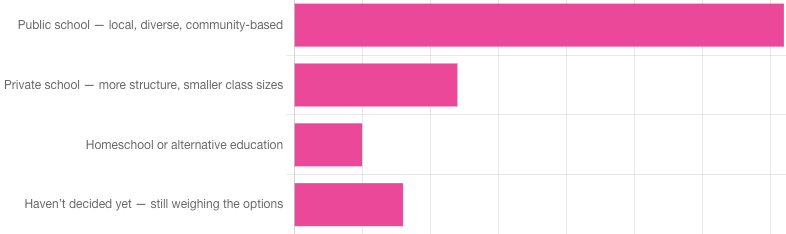 A smaller, but thoughtful group is leaning into homeschool or alternative education, while others are still in the thick of decision-making — researching, touring, and weighing what’s best.